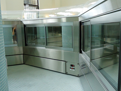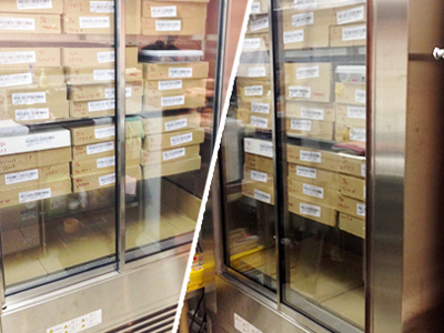 | ベルギーから輸入した高級チョコレートを保管しています。 種類は実に数十種類に及びます。 ケースは、保存箱の大きさと、保存量また設置スペースから、外寸、棚寸法を決めました。 温度・湿度管理を自動で行っています。 |