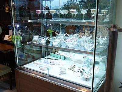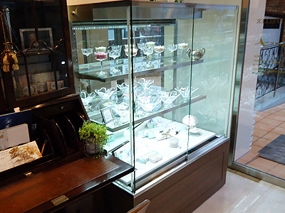 | ショーケースのガラス面とともに、腰も傾斜させています。 そのため商品が見やすく店内をより広く感じさせます。 さまざまなご要望のショーケースを製作いたします。 |