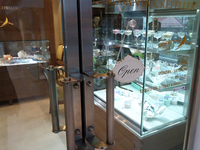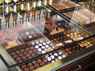 | アメリカのアクセサリーショップでチョコレートを販売しています。 写真の右がチョコレート冷蔵ケース、奥にはアクセサリーのショーケースが見えます。 |