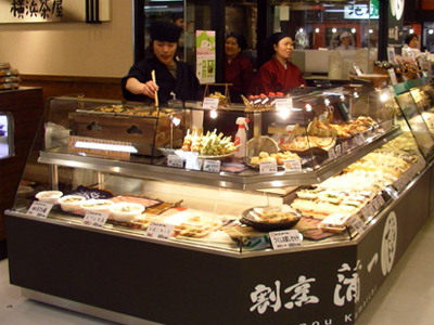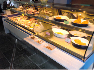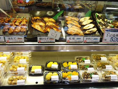 | 駅ビル地下で弁当・惣菜を販売しています。 店内のイートインコーナーで食事もできます。 |