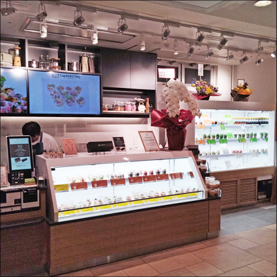 | チョコレートとペストリーとデリカのショーケースを一体化しました。 それぞれのの温度設定は別々に可能です。 腰回りには大理石を使用しています。 |