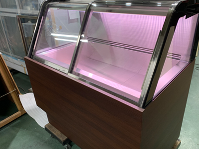 | 正面が開くケースです。 商品の陳列・庫内の清掃に大きなメリットがあります。 写真は2台連結仕様です。 |