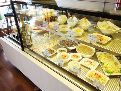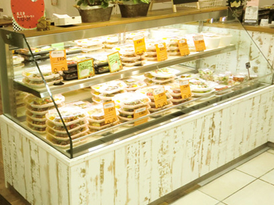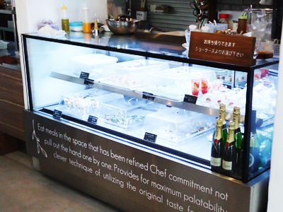| 食材が見えやすく、取り出し易くなっています。 また厨房の中に設置できるよう、ショーケースはコンパクトなカタチとのご要望をいただきました。 |