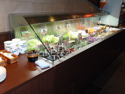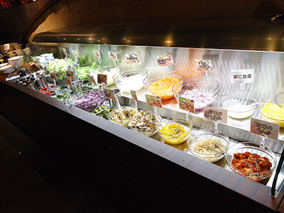 | 焼肉店様のサラダバーです。 野菜を新鮮に冷蔵保存し、ミストがケースの中を漂いみずみずしさを保ちます。 |