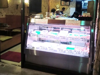 | 焼肉店の入口レジ横で、精肉をディスプレイしています。 生鮮用ランプで際立たせて、お肉を美味しくみせます。 |