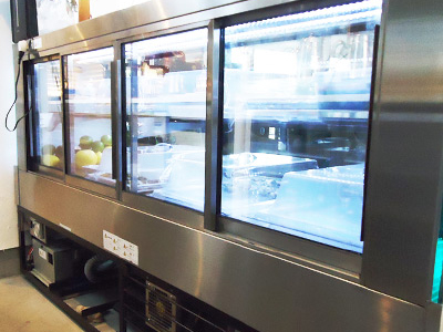 | 常に注目される代官山にオープンした、カラダに良い食材を提供するメキシコ料理店様です。 お客様からもショーケース内が見えやすく、冷蔵機能も万全です。 |