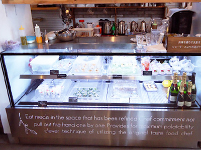 | 高級レストランの雰囲気を味わえるカフェです。コース料理も提供します。 建築家がご自身でプロデュースされました。 冷蔵ショーケースは、テイクアウト用に設置されました。 |