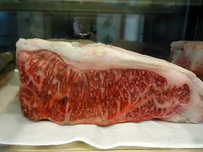 | 金沢市にある高級ステーキ店です。 店内円形カウンターの始まりの部分にあります。 じっくりと熟成した、高級肉をディスプレイしています。 |